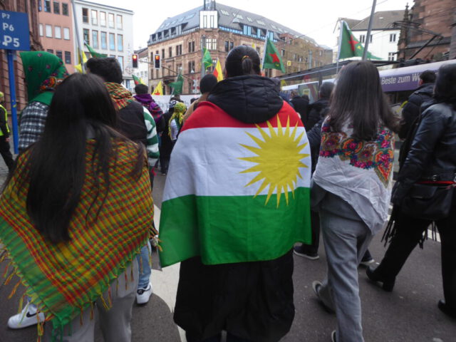 Weltweit finden Protestaktionen in Solidarität mit den kurdischen Menschen statt, so auch hier: